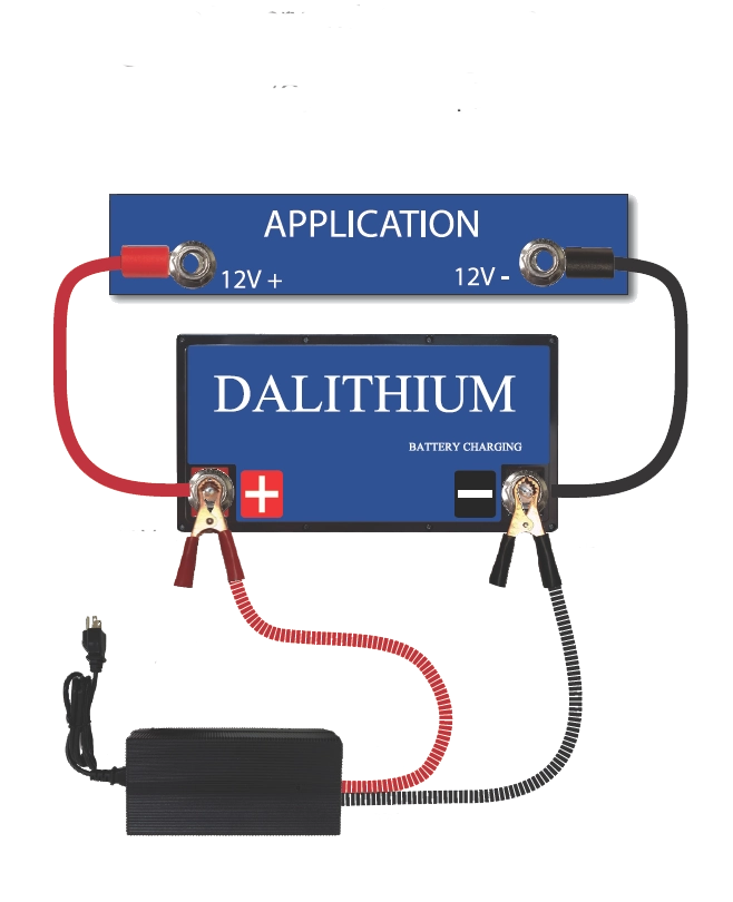 The charger voltage should always be equal to or less than the battery voltage. All DALithium charger is designed to stay connected and powered. Chargers without “trickle charge” feature should be discontinued once the charging process finished. To slowly charge the battery, use a charger with an amp rating by around 10% of the battery’s total amp-hours. For fast charging, use a charger output that is approximately 40-45% of the battery’s amp-hours. Slow charging do better performance on battery temperature control and improve the battery cycle-life, DALithium strongly recommends slow charging when possible. For example, with a 100Ah battery, you can charge it slowly with a 10A charger, and it will take about 10 hours to fully charge the battery. You could fast charge with a 45A charger as well in about 2.5hours.